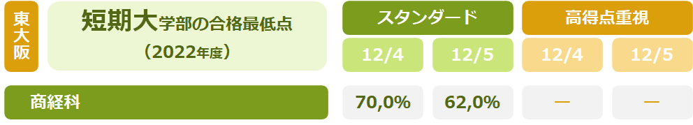 近畿大学短期大学部のスタンダード方式での合格最低点は以下の通りです。
